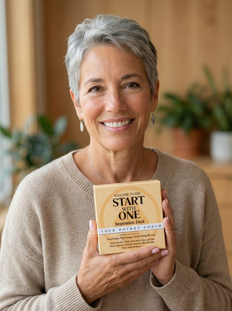At the heart of the Start With One philosophy is a simple truth: lasting change doesn’t come from perfection or sweeping overhaul—it begins with one small, compassionate step. After decades of coaching and watching overwhelm stop people before they even start, I created this approach—and this deck—to offer a gentler, more human path to health and healing. When we focus on just one doable action or one moment of awareness, we quiet the pressure, build momentum, and reconnect with what’s possible. One step is enough to begin.